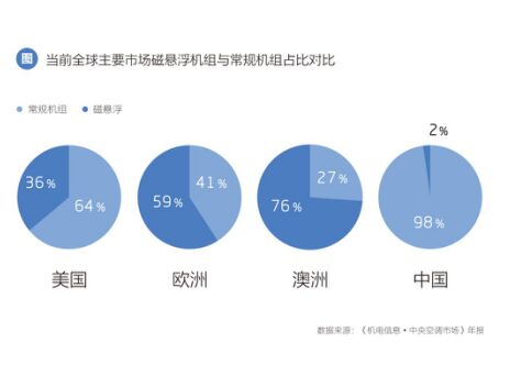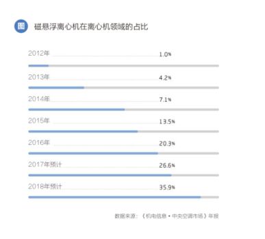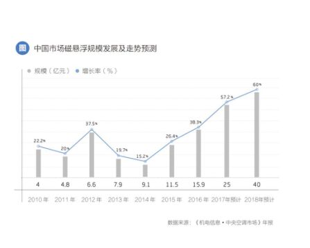 毫不夸張的講,正是憑借海爾的一己之力,叩開了磁懸浮中央空調在中國市場的大門?上驳氖,在今年的中國制冷展上,我們看到包括格力、美的在內超過30家的廠商開始加入到磁懸浮離心機拓展的陣營中。相關機構預測,到2018年底,磁懸浮離心機組在離心機的市場占有率有望接近40%,整體規(guī)模達到40億元,未來幾年內,磁懸浮離心機組都將保持60%左右的高增速,迎來徹底的爆發(fā)期。