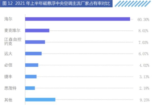 隨著近50家品牌一擁而上,中國磁懸浮中央空調(diào)市場規(guī)模迅速擴大。近兩年,各廠家陸續(xù)加強產(chǎn)品技術(shù)創(chuàng)新,以期提高自身占有率。其中,有個品牌卻跳出同質(zhì)化競爭道路,轉(zhuǎn)而發(fā)力高效機房場景應(yīng)用,結(jié)果份額一路高升,那就是海爾智家旗下的海爾中央空調(diào)。 8月4日,據(jù)《中央空調(diào)市場》數(shù)據(jù)顯示,在2021年上半年,海爾磁懸浮中央空調(diào)以60.3%份額穩(wěn)居行業(yè)首位,在工業(yè)地產(chǎn)、軌道交通、酒店行業(yè)中的占比有所提升。以用戶體驗為核心,海爾中央空調(diào)轉(zhuǎn)型場景生態(tài)形成差異化競爭力,為用戶帶來全流程智慧節(jié)能的最佳體驗。