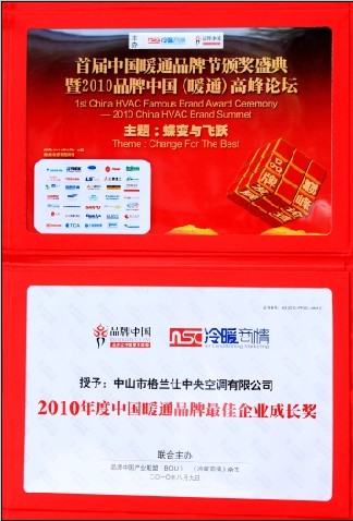 ——斬獲“最佳企業(yè)成長獎” 執(zhí)行總裁梁昭賢被授予“2010年度中國暖通界十大功勛企業(yè)家”榮譽稱號 2010年8月9日,由品牌中國產(chǎn)業(yè)聯(lián)盟和《冷暖商情》雜志聯(lián)合主辦的“2010首屆品牌中國(暖通)高峰論壇暨頒獎典禮”在京隆重舉行。建設(shè)部政策研究中心主任陳淮、品牌中國產(chǎn)業(yè)聯(lián)盟主席艾豐、品牌中國產(chǎn)業(yè)聯(lián)盟副秘書長張呂清等行業(yè)領(lǐng)頭人,格蘭仕、大金、海爾、美的、格力等國內(nèi)外著名中央空調(diào)廠家以及多家媒體代表等上百人出席了此次盛會。 本屆品牌節(jié)旨在尋求未來中國暖通業(yè)的發(fā)展方向,為行業(yè)發(fā)展搭建交流對話平臺,共議行業(yè)發(fā)展的熱點難點問題,研討企業(yè)調(diào)整結(jié)構(gòu)轉(zhuǎn)型升級之路,同時表彰那些具有卓越經(jīng)營業(yè)績和非凡發(fā)展特質(zhì)的優(yōu)秀品牌,樹立和推動行業(yè)標(biāo)桿企業(yè)、優(yōu)秀方案及產(chǎn)品、成功應(yīng)用典范,全面展示中國暖通業(yè)的成果和輝煌。格蘭仕中央空調(diào)因令人矚目的發(fā)展速度和卓越的經(jīng)營業(yè)績斬獲“2010年度中國暖品品牌最佳企業(yè)成長獎”,同時格蘭仕集團總裁梁昭賢也被授予“2010年度中國暖通界十大功勛企業(yè)家”榮譽稱號。