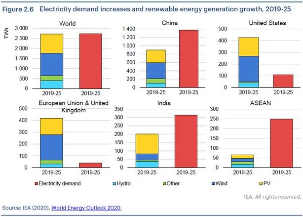根據(jù)國際能源機構(gòu)(IEA)最新報告,用于發(fā)電的可再生能源到2020年將增長7%,與其他燃料形成鮮明對比。盡管全球能源需求將下降5%,但增加并網(wǎng)容量和不斷安裝新項目表明可再生電力強勁增長。
