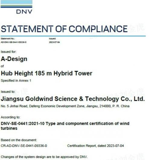 技術(shù)領(lǐng)先,權(quán)威認(rèn)可。目前,金風(fēng)科技185米鋼混塔架已經(jīng)獲得DNV A-level設(shè)計(jì)認(rèn)證證書,這也是金風(fēng)科技在鋼混塔架領(lǐng)域繼95米鋼混塔架獲UL認(rèn)證、140米鋼混塔架獲DNV認(rèn)證后獲得的第三張國際認(rèn)證證書。當(dāng)前,金風(fēng)科技鋼混塔架產(chǎn)品已累計(jì)獲得產(chǎn)品設(shè)計(jì)認(rèn)證及型式認(rèn)證30項(xiàng),全面覆蓋公司的主流機(jī)型平臺。