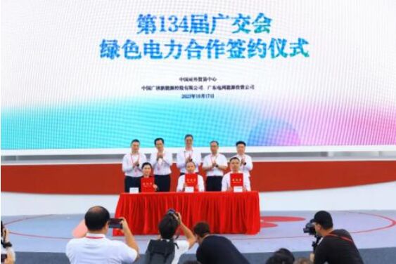 10月17日,第134屆中國(guó)進(jìn)出口商品交易會(huì)(以下簡(jiǎn)稱廣交會(huì))綠色電力合作簽約儀式在廣交會(huì)展館舉行,中國(guó)廣核新能源控股有限公司(以下簡(jiǎn)稱中廣核新能源)與中國(guó)對(duì)外貿(mào)易中心、廣東電網(wǎng)有限責(zé)任公司達(dá)成綠色電力交易合作,實(shí)現(xiàn)廣交會(huì)開辦以來(lái)首次綠色用電全覆蓋。中廣核新能源總經(jīng)理助理陳勝利出席并見證簽約儀式。