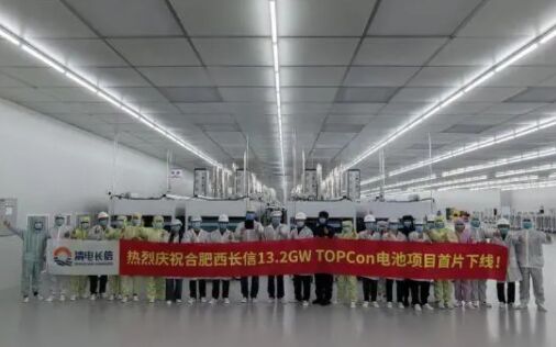 從打下首樁到首片下線,歷時158天,長信13.2GW高效光伏電池項目首片光伏電池片近日在肥西成功下線,肥西光儲新能源產(chǎn)業(yè)再添新動能。