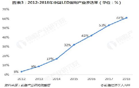 2020年行業(yè)產(chǎn)值規(guī)模突破1萬億元,滲透率達70% 2018年,LED照明行業(yè)作為節(jié)能減排的重點推行項目,在國家環(huán)保節(jié)能政策持續(xù)推行下,行業(yè)產(chǎn)業(yè)規(guī)模增速回暖,下游應(yīng)用滲透率進一步擴大。未來,將繼續(xù)受益于傳統(tǒng)照明政府限制政策以及LED技術(shù)的節(jié)能環(huán)保特性,LED照明正在快速替代傳統(tǒng)照明市場。 其實,2017年,發(fā)改委等多部門聯(lián)合出臺了《半導(dǎo)體照明產(chǎn)業(yè)“十三五”發(fā)展規(guī)劃》,提出到2020年,我國半導(dǎo)體照明關(guān)鍵技術(shù)不斷突破,產(chǎn)品質(zhì)量不斷提高,產(chǎn)品結(jié)構(gòu)持續(xù)優(yōu)化,產(chǎn)業(yè)規(guī)模穩(wěn)步擴大,到2020年,半導(dǎo)體照明產(chǎn)業(yè)整體產(chǎn)值要達到10000億元,LED照明產(chǎn)品銷售額占整個照明電器行業(yè)銷售總額的比例要達到70%。