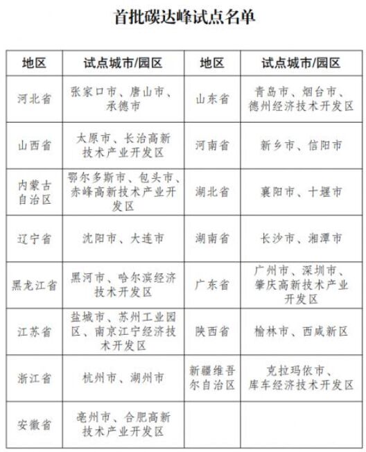 國(guó)家發(fā)展改革委辦公廳關(guān)于印發(fā)首批碳達(dá)峰試點(diǎn)名單的通知