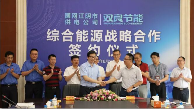 6月20日,雙良節(jié)能系統(tǒng)股份有限公司(簡稱雙良節(jié)能)與國網(wǎng)江蘇省電力有限公司江陰市供電分公司(簡稱國網(wǎng)江陰市供電公司)達(dá)成綜合能源戰(zhàn)略合作,雙方將在江陰能源互聯(lián)網(wǎng)云平臺以及綜合能源領(lǐng)域構(gòu)建長期的戰(zhàn)略合作伙伴關(guān)系,建設(shè)“開放、共享、創(chuàng)新”的江陰能源互聯(lián)網(wǎng)云,打造“互聯(lián)網(wǎng)+電子商務(wù)+智慧能源”服務(wù)模式。 近年來,綜合能源服務(wù)在全球迅速發(fā)展,引發(fā)了能源系統(tǒng)的深刻變革,成為世界各國及各能源企業(yè)戰(zhàn)略轉(zhuǎn)型的重要方向。在能源革命背景下,能源企業(yè)從生產(chǎn)型向服務(wù)型轉(zhuǎn)型發(fā)展已經(jīng)成為全球性趨勢。 國家電網(wǎng)有限公司在今年2月正式印發(fā)《推進(jìn)綜合能源服務(wù)業(yè)務(wù)發(fā)展2019-2020年行動計(jì)劃》,將引領(lǐng)能源新技術(shù)應(yīng)用、統(tǒng)籌布局綜合能效服務(wù)、供冷供熱供電多能服務(wù)、分布式清潔能源服務(wù)和專屬電動汽車服務(wù)等四大重點(diǎn)業(yè)務(wù)領(lǐng)域。 國網(wǎng)江陰市供電公司主要負(fù)責(zé)經(jīng)營、管理、建設(shè)江陰地區(qū)電網(wǎng),為江陰經(jīng)濟(jì)社會發(fā)展和人民生活提供電力保障。本次簽約儀式上,雙良節(jié)能董事長繆文彬、低碳研究院院長吳剛、智慧能源管理公司總經(jīng)理傅勇飛等相關(guān)領(lǐng)導(dǎo)與國網(wǎng)江陰市供電公司總經(jīng)理柳惠波、副總經(jīng)理沈才元一行進(jìn)行了友好會談。