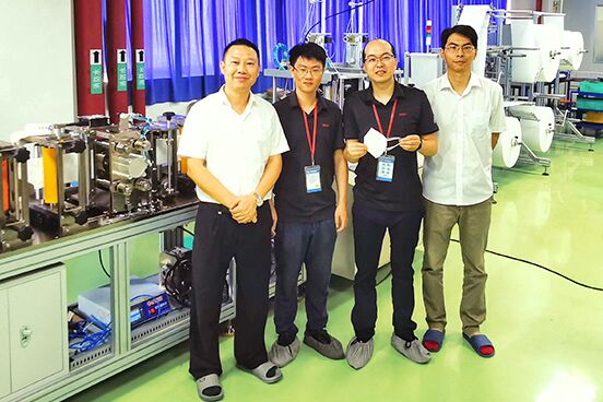 [2020年6月3日,中國(guó)] 隨著國(guó)內(nèi)外新冠疫情的發(fā)展,口罩等醫(yī)療物資需求巨大,精合電氣春節(jié)假期復(fù)工后就成立團(tuán)隊(duì)進(jìn)行平面口罩機(jī)的設(shè)計(jì)與生產(chǎn)。為了保證口罩生產(chǎn)過(guò)程的品質(zhì)及衛(wèi)生安全,精合電氣開(kāi)發(fā)的設(shè)備以一次性成型生產(chǎn)設(shè)備為設(shè)計(jì)目標(biāo),確?谡诌_(dá)到衛(wèi)生技術(shù)規(guī)范標(biāo)準(zhǔn),并力求減少人工成本。5 月初,精合電氣就開(kāi)始啟動(dòng) N95 口罩機(jī)的設(shè)計(jì), 短短兩周的時(shí)間完成了設(shè)計(jì)及裝機(jī)并進(jìn)入調(diào)試,實(shí)現(xiàn)了每分鐘 40-50 片一次性成型 N95 口罩的生產(chǎn)效率。 廈門(mén)精合電氣自動(dòng)化有限公司(簡(jiǎn)稱“精合電氣”)是一家高新技術(shù)企業(yè),隸屬?gòu)B門(mén)宏發(fā)電聲股份有限公司(簡(jiǎn)稱“宏發(fā)股份”股票代碼 600885)。精合電氣專(zhuān)業(yè)致力于電子工業(yè)專(zhuān)用的自動(dòng)化生產(chǎn)線、自動(dòng)化設(shè)備和工業(yè)機(jī)器人的研發(fā)、設(shè)計(jì)、制造,是宏發(fā)股份最重要的自動(dòng)化設(shè)備供應(yīng)商。十多年來(lái),精合公司不斷發(fā)展,現(xiàn)已擁有一支由高工、工程師、專(zhuān)業(yè)技工等組成的160多人的專(zhuān)業(yè)團(tuán)隊(duì),積聚了雄厚的技術(shù)力量。精合人不斷創(chuàng)新,持續(xù)改善,多次承接了國(guó)家重點(diǎn)技術(shù)改造項(xiàng)目。多項(xiàng)研發(fā)項(xiàng)目獲得國(guó)家級(jí)重點(diǎn)新產(chǎn)品發(fā)明專(zhuān)利、實(shí)用專(zhuān)利。精合電氣也獲得廈門(mén)市高新技術(shù)企業(yè)、最具成長(zhǎng)性企業(yè)、科技進(jìn)步獎(jiǎng)等多項(xiàng)榮譽(yù)。 精合電氣的電氣工程師團(tuán)隊(duì) 5 年前就開(kāi)始使用倍福的 TwinCAT 3 軟件作為自動(dòng)化設(shè)備及生產(chǎn)線的開(kāi)發(fā)平臺(tái)。該一次性成型 N95 口罩機(jī)采用倍福嵌入式控制器 CX5130 和 I/O 模塊 EL1889、EL2889,依靠 TwinCAT 3 軟件強(qiáng)大且完善的運(yùn)動(dòng)控制模塊,通過(guò) EtherCAT 總線技術(shù)控制伺服電機(jī)與步進(jìn)電機(jī)。分布式 I/O 讓布線更加簡(jiǎn)單與便捷,整套程序可以在不同的生產(chǎn)工藝中輕松地增加或減少設(shè)備工序。精合電氣電氣部總工雷鳴表示:“倍福產(chǎn)品在我們以往項(xiàng)目的使用中非常安全可靠。我們也用 TwinCAT 3 軟件開(kāi)發(fā)了很多企業(yè)內(nèi)部使用的標(biāo)準(zhǔn)化程序框架,并且積累了很多調(diào)試經(jīng)驗(yàn)。倍福福建辦事處在服務(wù)與技術(shù)上給予的大力支持,讓我們以及我們的客戶更有信心選用倍福的產(chǎn)品! 由于設(shè)備開(kāi)發(fā)的緊迫性,倍福中國(guó)的技術(shù)工程師蔡建忠與精合電氣工程師黃皇緊密溝通設(shè)備的工藝要求,并將程序架構(gòu)布置好。他們借助 TwinCAT 3 軟件平臺(tái)中的 Scopeview 功能抓取電機(jī)的速度位置及程序中動(dòng)作觸發(fā)變量曲線,進(jìn)行動(dòng)作時(shí)序分析并優(yōu)化程序,提高了生產(chǎn)效率,只用了一天的調(diào)試時(shí)間就完成了設(shè)備調(diào)試。 精合電氣工程師黃皇說(shuō)道:“采用倍福的控制系統(tǒng),使我們加快了N95口罩機(jī)的開(kāi)發(fā)與調(diào)試周期。EtherCAT 總線技術(shù)能快速、準(zhǔn)確地控制伺服電機(jī)、步進(jìn)電機(jī),解決了以往脈沖控制模式抗干擾差、丟步等現(xiàn)象!