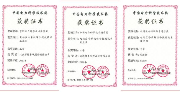 近日,雙良節(jié)能系統(tǒng)股份有限公司、江蘇雙良冷卻系統(tǒng)有限公司與西安熱工院等聯(lián)合申報的《電站空冷系統(tǒng)綜合提效技術及應用》項目榮獲2020年度中國電力科學技術進步獎三等獎。