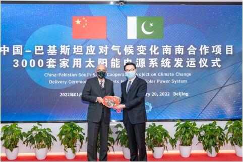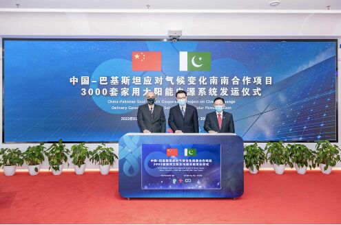 中國(guó)始終高度重視應(yīng)對(duì)氣候變化工作,在堅(jiān)決走綠色低碳發(fā)展道路的同時(shí),近年來(lái)通過(guò)多種形式的南南務(wù)實(shí)合作,盡己所能幫助發(fā)展中國(guó)家提高應(yīng)對(duì)氣候變化能力,已與36個(gè)發(fā)展中國(guó)家簽署41份應(yīng)對(duì)氣候變化合作文件。中巴兩國(guó)建交70年以來(lái),始終患難與共、同舟共濟(jì)。兩國(guó)于2021年7月簽署南南合作諒解備忘錄,中方向巴方援助3000套太陽(yáng)能光伏電源系統(tǒng),幫助巴方提高應(yīng)對(duì)氣候變化能力。雙方將共同努力確保該批物資實(shí)現(xiàn)其低碳環(huán)保價(jià)值,為中巴經(jīng)濟(jì)走廊建設(shè)和巴方應(yīng)對(duì)氣候變化作出貢獻(xiàn)。