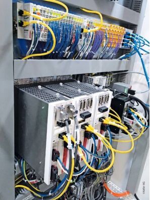 Florian Wernli 認(rèn)為,EtherCAT 在數(shù)據(jù)通信方面也有很大的優(yōu)勢(shì):“我們一直支持 EtherCAT 標(biāo)準(zhǔn),我們可以使用倍福及第三方供應(yīng)商提供的各種組件。另一個(gè)好處是,例如,在集成其它總線(xiàn)系統(tǒng)時(shí),我們可以從多樣化的診斷功能和開(kāi)放性中獲益!彼J(rèn)為另一個(gè)重要的方面是可以通過(guò)各種選項(xiàng)減少布線(xiàn)工作:“我們不再需要鋪設(shè)每一根電纜,這對(duì)我們來(lái)說(shuō)是一個(gè)真正意義上的額外收獲。除了 CP-Link 4 和 OCT 之外,EtherCAT P 也為我們提供了額外的優(yōu)化潛力。在 I/O 方面,我們一直采用 EtherCAT P,即對(duì)于全自動(dòng)壓印機(jī),我們采用的是 EPP 系列 I/O 端子盒!本唧w來(lái)說(shuō),這些 EPP 系列 I/O 端子盒包括 1 個(gè) EPP1004 4 通道數(shù)字量輸入端子盒,5 個(gè) EPP1018 8 通道數(shù)字量輸入端子盒、9 個(gè) EPP1809 和 2 個(gè) EPP1816 16 通道數(shù)字量輸入端子盒,以及 2 個(gè) EPP3184 4 通道模擬量輸入端子盒。