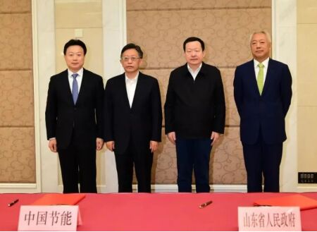 11月8日,中國節(jié)能與山東省人民政府在濟南市簽署戰(zhàn)略合作框架協(xié)議。集團公司黨委書記、董事長宋鑫,山東省委副書記、省長周乃翔出席儀式并見簽。集團公司黨委常委、副總經(jīng)理曹華斌,山東省副省長凌文代表雙方簽約,山東省政府秘書長宋軍繼主持簽約儀式。