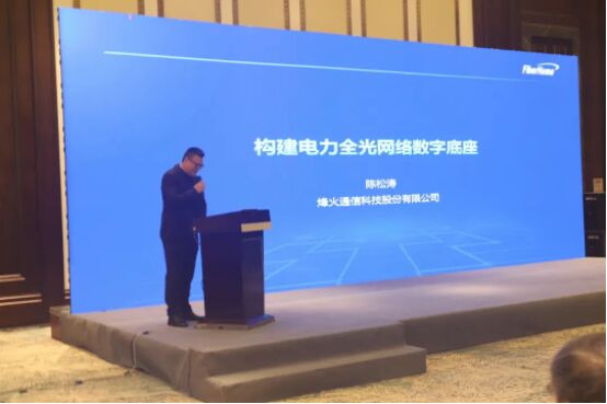 會(huì)上,烽火通信光傳輸產(chǎn)品線總監(jiān)陳松濤以《構(gòu)建電力全光網(wǎng)絡(luò)數(shù)字底座》為主題發(fā)表演講。