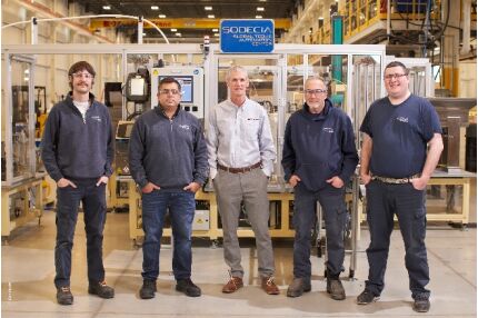在位于安大略省倫敦的 Sodecia 全球技術(shù)和自動(dòng)化中心(左起):Jessy Underhill、Danilo Abijaude Silva、倍福加拿大分公司的 Dean Herron、Ervin Pfaff 和 Chris Drees