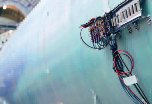 2018 年,公司決定擴建其位于奧爾堡基地的檢測中心,新建一棟更大的試驗廳,并升級更新之前使用的控制系統(tǒng)。系統(tǒng)負責(zé)控制與數(shù)百個沿著巨大的轉(zhuǎn)子葉片運行的數(shù)據(jù)采集箱之間的通信,并采集傳感器中的測量信號。在傳統(tǒng)的測試方法中,每個測量點都需要一根單獨的線纜,這樣不僅會產(chǎn)生巨額成本,而且用來連接葉片以及控制系統(tǒng)的線纜會太多,容易纏到一起。
