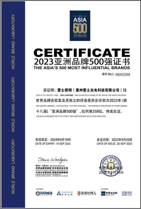 近日,由世界品牌實(shí)驗(yàn)室(World Brand Lab)主辦的“亞洲品牌大會(huì)”正式發(fā)布2023年《亞洲品牌500強(qiáng)》排行榜,雷士照明與華為、海爾、騰訊等各行業(yè)頭部品牌一同上榜,位列榜單第358位,再次彰顯雷士照明在行業(yè)里無(wú)可比攀的品牌價(jià)值和雄厚的品牌實(shí)力。