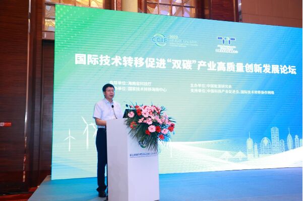 9月21日,2023碳達峰碳中和國際論壇之國際技術轉移促進“雙碳”產業(yè)高質量創(chuàng)新發(fā)展論壇在?谂e行。承辦方供圖