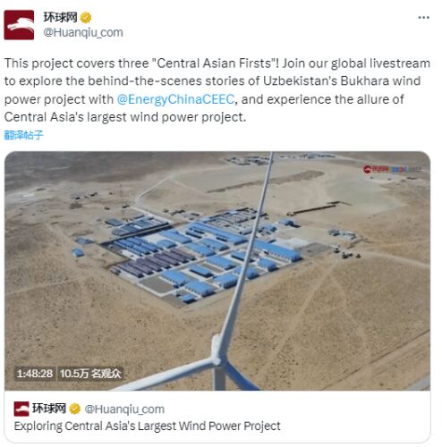 2013年9月,共建絲綢之路經(jīng)濟(jì)帶重大倡議提出,至今已整十年。在這重要?dú)v史節(jié)點(diǎn),環(huán)球網(wǎng)聯(lián)合中國(guó)能建于北京時(shí)間9月25日16:00策劃了“風(fēng)起絲路,電連天涯:探秘中亞第一大風(fēng)力發(fā)電項(xiàng)目”海外直播活動(dòng),通過(guò)臉書(shū)、推特等海外社交媒體平臺(tái),帶領(lǐng)全球觀(guān)眾一起聆聽(tīng)烏茲別克斯坦布哈拉風(fēng)電項(xiàng)目建設(shè)的幕后故事,近距離感受中國(guó)企業(yè)為推動(dòng)世界綠色低碳發(fā)展做出的切實(shí)行動(dòng),見(jiàn)證“一帶一路”上建設(shè)者們的風(fēng)采。