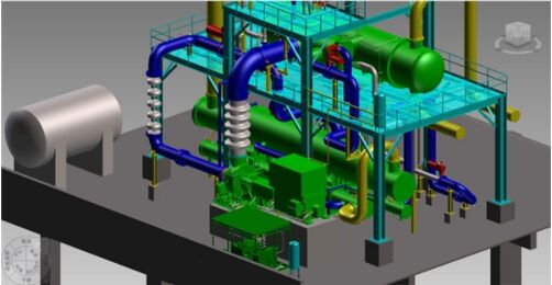 “我們采用了創(chuàng)新的有機朗肯循環(huán)(ORC)技術(shù),以回收和再利用聚酯主裝置工藝塔產(chǎn)生的102℃飽和聚酯蒸汽,”項目有關(guān)工作人員詳細介紹,“項目中的ORC發(fā)電機組采用了五氟丙烷作為工質(zhì)。系統(tǒng)配置包括蒸發(fā)器、兩級預(yù)熱器、回熱器和冷凝器,可高效回收和再利用聚酯蒸汽的熱量。工質(zhì)在加熱后氣化,然后送入高效徑向離心透平機做功,進而拖動發(fā)電機轉(zhuǎn)動并發(fā)電,最后實現(xiàn)能量的轉(zhuǎn)換。完成發(fā)電后,飽和聚酯蒸汽被冷卻,凝液約50℃后返回聚酯主裝置進行循環(huán)利用。”
