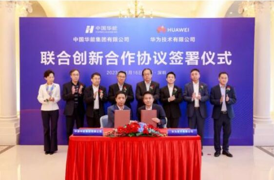 11月16日,中國華能集團(tuán)有限公司(以下簡稱“中國華能”)與華為數(shù)字能源技術(shù)有限公司(以下簡稱“華為數(shù)字能源” )在深圳簽署新能源聯(lián)合創(chuàng)新合作協(xié)議。中國華能副總經(jīng)理樊啟祥,科技部主任許世森,信息中心主任楊正新,國際部副主任劉文莉,華為高級(jí)副總裁、數(shù)字能源全球營銷服體系總裁楊友桂,華為高級(jí)副總裁鄒志磊,華為數(shù)字能源中國區(qū)智能光伏業(yè)務(wù)總裁邢清,華為中國區(qū)電力業(yè)務(wù)部總經(jīng)理李繼光共同出席并見證簽約儀式。中國華能新能源事業(yè)部副主任趙民,華為數(shù)字能源中國區(qū)智能光伏業(yè)務(wù)副總裁楊宇分別代表雙方簽約。