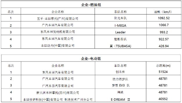 2023 第 14 屆 Honda 中國(guó)節(jié)能競(jìng)技大賽各組別優(yōu)勝車(chē)隊(duì)
