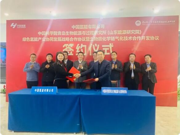 1月11日,中國氫能有限公司(以下簡稱“中國氫能”)與中國科學院青島生物能源與過程研究所(以下簡稱“青島能源所”)、山東能源研究院在青簽署綠色氫能產(chǎn)業(yè)協(xié)同發(fā)展戰(zhàn)略合作協(xié)議,“生物質化學鏈氣化技術項目”同步簽約落地。項目預計將于明年底在山東建成年產(chǎn)綠色甲醇10萬噸生產(chǎn)線,年產(chǎn)值約5億元,實現(xiàn)甲醇制備過程近零碳排放。