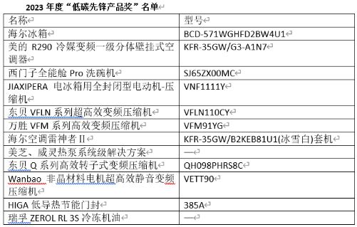 其中,海爾膠州空調(diào)綠色低碳工廠實踐、美的綠電行動、加西貝拉高效變頻壓縮機綠色工廠、海爾冰箱綠色智造園區(qū)、博西家電可持續(xù)發(fā)展行動、GMCC美芝綠色工廠、錢江制冷壓縮機現(xiàn)代化智能工廠獲得“可持續(xù)發(fā)展優(yōu)創(chuàng)獎”。12款產(chǎn)品或解決方案獲得“低碳先鋒產(chǎn)品獎”。