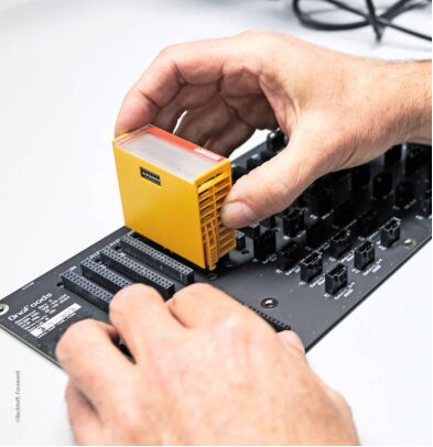 每個 Makeline 模塊都采用了 EJ 系列 EtherCAT 插拔式 TwinSAFE 安全模塊,它們安裝在一個定制設(shè)計(jì)的 PCB 板(信號分配電路板)上。這些 EJ 插拔式模塊比采用傳統(tǒng)方式接線的 I/O 端子模塊的體積小了大約 50%,此外,它們還可以降低不正確接線的風(fēng)險(xiǎn)。