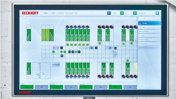 該系統(tǒng)是一個(gè)能夠很好地說明基于 PC 的控制技術(shù)可以用來執(zhí)行各種任務(wù)和功能的典型例子。除了一臺(tái) C6670 控制柜式工業(yè)服務(wù)器負(fù)責(zé)控制和協(xié)調(diào) 100 塊平面模塊以及其上的 33 個(gè)動(dòng)子之外,還有 10 臺(tái) C6032 超緊湊型工業(yè) PC 用于控制其它系統(tǒng)組件。Delta 機(jī)器人的自動(dòng)化通過 AX8000 多軸伺服系統(tǒng)和 AM8000 伺服電機(jī)實(shí)現(xiàn)!拔覀兪褂 AMI8100 驅(qū)控一體伺服電機(jī)送入和彈出托盤,因?yàn)樗鼈兘Y(jié)構(gòu)非常緊湊,只需 EtherCAT 和 48 V 電壓即可運(yùn)行!盪lrich Brockhaus 說道。編程工站中的 AA1000 線性執(zhí)行機(jī)構(gòu)用于接觸端子模塊;測(cè)試工站中的 AA3000 電動(dòng)缸用于載入端子模塊載具。整個(gè)系統(tǒng)的安全都由 TwinSAFE 保障。TwinCAT Vision 可以捕捉到 DataMatrix 碼。車間內(nèi)共有四個(gè)測(cè)試柜,每個(gè)測(cè)試柜中都安裝了約 40 個(gè) ELM 系列的 EtherCAT 測(cè)量端子模塊。此外,測(cè)試柜中還使用了各種 EL 系列的 EtherCAT 端子模塊。“在這個(gè)項(xiàng)目中,基于 PC 的控制技術(shù)為我們帶來了很多便利,并為我們留下了進(jìn)一步擴(kuò)展的選項(xiàng)!盡ichael Golz 說道。