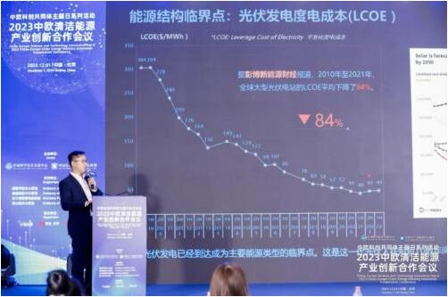 12月1日,2023中歐清潔能源產(chǎn)業(yè)創(chuàng)新合作會議于北京召開。本次會議以促進中歐清潔能源科技交流與合作為宗旨,邀請了中歐清潔能源領域企業(yè)代表、歐洲多國駐華使領館大使或參贊、清潔能源領域知名專家學者等參會,共同探討與分享中歐清潔能源先進科技和優(yōu)秀合作案例。天合光能受邀出席此次論壇,發(fā)表了《天合光能210R黃金尺寸價值引領,共建組件標準化生態(tài)》的主題演講,解析光伏行業(yè)的前沿技術和設計趨勢,并分享了天合光能助力歐洲企業(yè)實現(xiàn)凈零碳目標的優(yōu)秀案例。