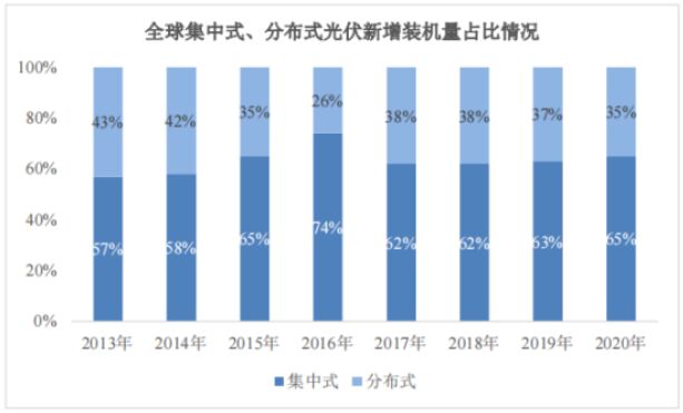 全球集中式、分布式光伏新增裝機(jī)量占比情況,據(jù)來(lái)源:IEA、方正證券研究所、天風(fēng)證券
