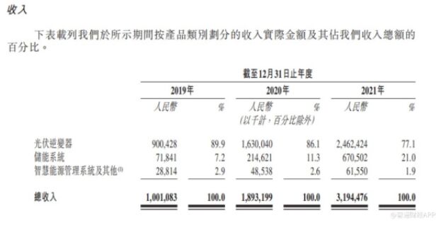 此外,根據(jù)分布式光伏逆變器龍頭企業(yè)古瑞瓦特招股書數(shù)據(jù)顯示,2019-2021年儲(chǔ)能系統(tǒng)營(yíng)收分別為0.72億、2.15億、6.7億,均呈高速增長(zhǎng)態(tài)勢(shì),儲(chǔ)能系統(tǒng)營(yíng)收占比也越來(lái)越高。