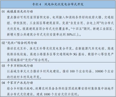 在“十四五”規(guī)劃中,重點(diǎn)提及了“光伏+”和“千鄉(xiāng)萬(wàn)戶沐光行動(dòng)”,如下圖所示。而這兩個(gè)發(fā)展方向,均與農(nóng)民利益相關(guān)。