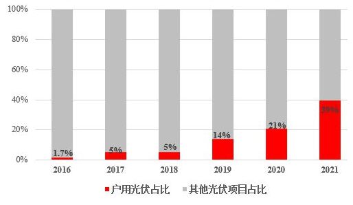 圖:最近幾年不同類型戶用光伏項(xiàng)目占比