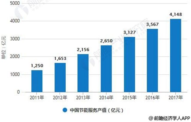 節(jié)能服務(wù)行業(yè)基本概況分析。節(jié)能服務(wù)行業(yè)以各種專業(yè)性的節(jié)能服務(wù)公司為主體,以能源消費者為客戶,幫助客戶解決節(jié)能運營改造的技術(shù)和執(zhí)行問題,是現(xiàn)代服務(wù)業(yè)的重要組成部分。 節(jié)能服務(wù)項目主要分布在建筑、工業(yè)和交通運輸領(lǐng)域,接受節(jié)能服務(wù)的目的在于減少能源消耗、提高能源使用效率、降低污染排放等。 中國節(jié)能服務(wù)產(chǎn)業(yè)產(chǎn)值分析預(yù)測 據(jù)前瞻產(chǎn)業(yè)研究院發(fā)布的《節(jié)能服務(wù)行業(yè)市場前瞻與投資戰(zhàn)略規(guī)劃分析報告》統(tǒng)計數(shù)據(jù)顯示,2017年中國節(jié)能服務(wù)產(chǎn)業(yè)產(chǎn)值達4148億元,全國從事節(jié)能服務(wù)的企業(yè)6137家,行業(yè)從業(yè)人數(shù)68.5萬人,合同能源管理投資形成年節(jié)能能力超過3800萬噸標準煤,年減排二氧化碳突破1億噸,節(jié)能服務(wù)產(chǎn)業(yè)繼續(xù)保持了良好發(fā)展勢頭。預(yù)計2018年我國節(jié)能服務(wù)業(yè)總產(chǎn)值將達到4688億元,未來五年(2018-2022)年均復(fù)合增長率約為13.35%,預(yù)測到了2022年我國節(jié)能服務(wù)業(yè)總產(chǎn)值將達到7740億元。
