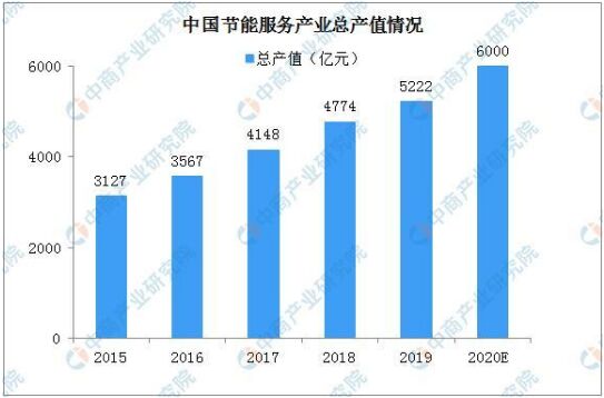 節(jié)能服務(wù)產(chǎn)業(yè)行業(yè)現(xiàn)狀 1、產(chǎn)業(yè)配套齊全 節(jié)能服務(wù)產(chǎn)業(yè)鏈涉及眾多的行業(yè),包括節(jié)能材料、節(jié)能設(shè)備以及先進的能源管理軟件系統(tǒng)。我國的節(jié)能服務(wù)產(chǎn)業(yè)已經(jīng)形成了較為龐大的規(guī)模,產(chǎn)業(yè)鏈日趨完善,產(chǎn)品配套能力較強,可以針對地域特征、節(jié)能需求和投資預(yù)算提供差異化的節(jié)能產(chǎn)品和服務(wù)。目前,我國的節(jié)能材料、節(jié)能設(shè)備以及能源管理軟件系統(tǒng)已實現(xiàn)自給自足,具有相對低廉的采購成本,與下游客戶和產(chǎn)品市場貼合比較密切,市場反應(yīng)時間快,完整的產(chǎn)業(yè)鏈為我國節(jié)能服務(wù)產(chǎn)業(yè)的迅速發(fā)展提供了基本保障。 2、產(chǎn)業(yè)規(guī)模快速增長 近年來,節(jié)能服務(wù)產(chǎn)業(yè)總產(chǎn)值不斷增長,呈逐年上漲趨勢。中國節(jié)能協(xié)會數(shù)據(jù)顯示,2019年我國節(jié)能服務(wù)產(chǎn)業(yè)總產(chǎn)值達5222億元,同比增長9.38%。根據(jù)《“十三五”節(jié)能環(huán)保產(chǎn)業(yè)發(fā)展規(guī)劃》,到2020年節(jié)能服務(wù)業(yè)總產(chǎn)值達到6000億元。我國節(jié)能服務(wù)行業(yè)潛力巨大。