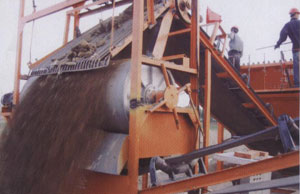 磁選機介紹: 磁選機適用于粒度3mm以下的磁鐵礦、磁黃鐵礦、焙燒礦、鈦鐵礦等物料的濕式磁選,也用于煤、非金屬礦、建材等物料的除鐵作業(yè)。磁選機的磁系,采用優(yōu)質(zhì)鐵氧體材料或與稀土磁鋼復(fù)合而成,筒表平均磁感應(yīng)強度為100~600mT。磁選過程是在磁選機的磁場中,借助磁力與機械力對礦粒的作用而實現(xiàn)分選的。 磁選機分類: 按照磁鐵的種類來分可以分為 :永磁磁選機和電磁除鐵機。 按照礦的干濕來分類可以分為:干式除鐵機,濕式除鐵機。 按照磁系來分類可以分為:筒式磁選機機,輥式磁選機機和筒輥式磁選機機。 按照磁系數(shù)量來分類可以分為:單筒磁選機,雙筒磁選機和組合式多筒磁選機。 按照給礦方式分類可以分為:上部給礦磁選機,下部給礦磁選機。 按照磁場強度分類可以分為:弱磁磁選機,中磁磁選機和強磁磁選機。 按照磁系的分類可以分為:開放式磁路磁選機,閉合時磁路磁選機。 磁選機技術(shù)參數(shù): 型號 筒徑mm 筒長mm 圓筒轉(zhuǎn)速r/min 給料粒度mm 處理量 t/h 功率KW CTB6012 600 1200 35 2-0 10-20 1.5 CTB6018 600 1800 35 2-0 15-30 2.2 CTB7518 750 1800 35 2-0 20-45 2.2 CTB9018 900 1800 35 3-0 40-60 3 CTB9021 900 2100 35 3-0 45-60 3 CTB9024 900 2400 28 3-0 45-70 4 CTB1018 1050 1800 20 3-0 50-75 5.5 CTB1021 1050 2100 20 3-0 50-100 5.5 CTB1024 1050 2400 20 3-0 60-120 5.5 CTB1218 1200 1800 18 3-0 80-140 5.5 CTB1224 1200 2400 18 3-0 85-180 7.5 CTB1230 1200 3000 18 3-0 100-180 7.5