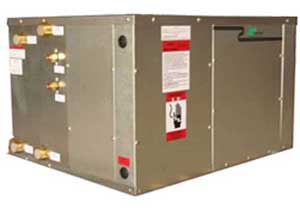 水-水式水環(huán)/水源/地源熱泵機(jī)組是以地能(地下水)或循環(huán)流動的水或鹽水為主要能源,輔以電能,通過先進(jìn)的設(shè)備將地下取之不竭但不易利用的低品位再生能源加以開發(fā)利用,使其變?yōu)楦咂肺荒茉,同時(shí)向室內(nèi)未端供應(yīng)冷(熱)水,來達(dá)到制冷(熱)目的。