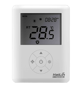 適用于中央空調風機盤管系統(tǒng)或風管道系列的室內溫度控制、通過室內溫度和設定溫度相比較、對空調系統(tǒng)末端的風機盤管、電動閥、電動球閥或風閥進行開啟和關閉控制、達到調節(jié)室內溫度、舒適及節(jié)能的目的。 適用于空調二管制、四管制水系統(tǒng)或風管道系統(tǒng)。 產品特點: 1、外觀豪華 2、觸摸式感應按鍵、手感舒適 3、超大液晶屏顯示 4、白色背光、視覺舒適 5、顯示溫度精確到0.5℃ 6、功能強大:制冷、制熱、風速選擇、時鐘設定、低溫保護等多功能 7、可鎖(解鎖)按鍵,防止他人誤按鍵 8、外觀顏色:白色 9、安全可靠:采用高可靠性單片機,抗干擾性強;采用繼電器作為輸出控制器件,可靠性高 10、個性化服務:可選華氏/攝氏度顯示;可選擇12/24小時制時鐘;可編寫程實現(xiàn)發(fā)雜的控制功能,滿足不同需求 11、通過安全性和高可靠性測試 12、寬電源電壓范圍(AC85~260V) 技術指標: 1、感溫元件:NTC 2、控溫精度:±1℃ 3、溫度設定范圍:5~35℃ 4、顯示方式:LCD 5、按鍵:感應按鍵 6、自耗功率:<1w 7、外殼材料:pc+ABS(阻燃) 8、電源電壓:AC85~260V,50/60Hz 9、負載電流:2A(阻性負載),1A(感幸負載) 10、外形尺寸:86×115×23.5mm(寬×高×厚) 11、安裝方式:標準86盒安裝 12、安裝孔距60mm/83.5mm(標準) 13、接線方式:端子壓接 14、接線端子:能夠連接2×1.5mm²;或1×2.5mm²;的導線 15、工作環(huán)境:0~45℃,5~95%RH(不結露) 16、儲存溫度;-10~55℃ 產品功能 1、室內溫度設定 2、室內溫度測量并顯示 3、制冷/制熱/通風模式選擇 4、手動或自動轉換風機三速 5、時鐘功能 6、白色背光 7、溫度回差可設定 8、可選擇停機后啟動低溫保護模式 9、可選擇掉電保持功能 10、可鎖定(解鎖)按鍵,防止他人誤按鍵 11、可顯示溫度傳感器故障,便于維修及故障排除 12、可選定時開關機控制 13、可選7天四時段編程